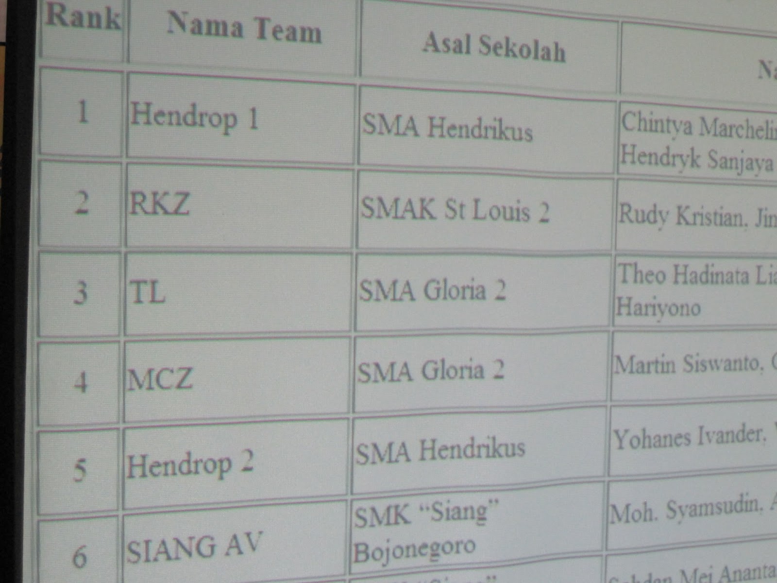 | My team, Hendrop 1, got the 1st rank in the first stage! yeay! |