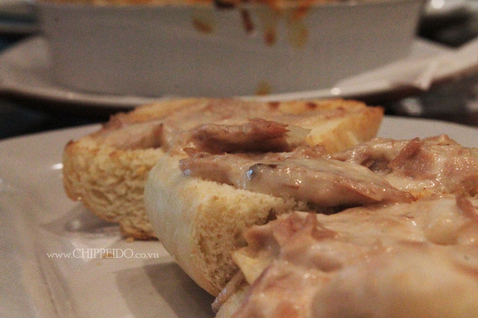 First, appetizer yang menggoda ini disajikan hanya 4 potong saja. Eits! Jangan salah dulu, as you can see in this photo irisannya bisa dikatakan cukup besar untuk jenis hidangan pembuka. Well, menu yang ini namanya adalah Tuna Delight yang super creammmmmy dan gurih. Seperti namanya, potongan tuna dengan saus creamy di atas roti panggang yang renyah ini cocok banget untuk dijadikan intro sembari menunggu si sexy Personal Pan Pizza (BBQ BEEF) yang masih dipoles biar makin cancyik.