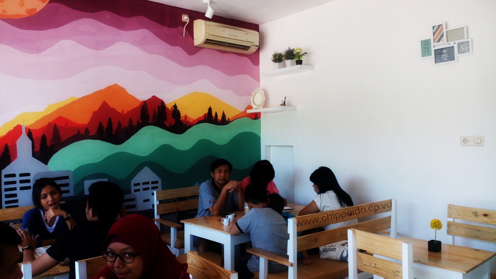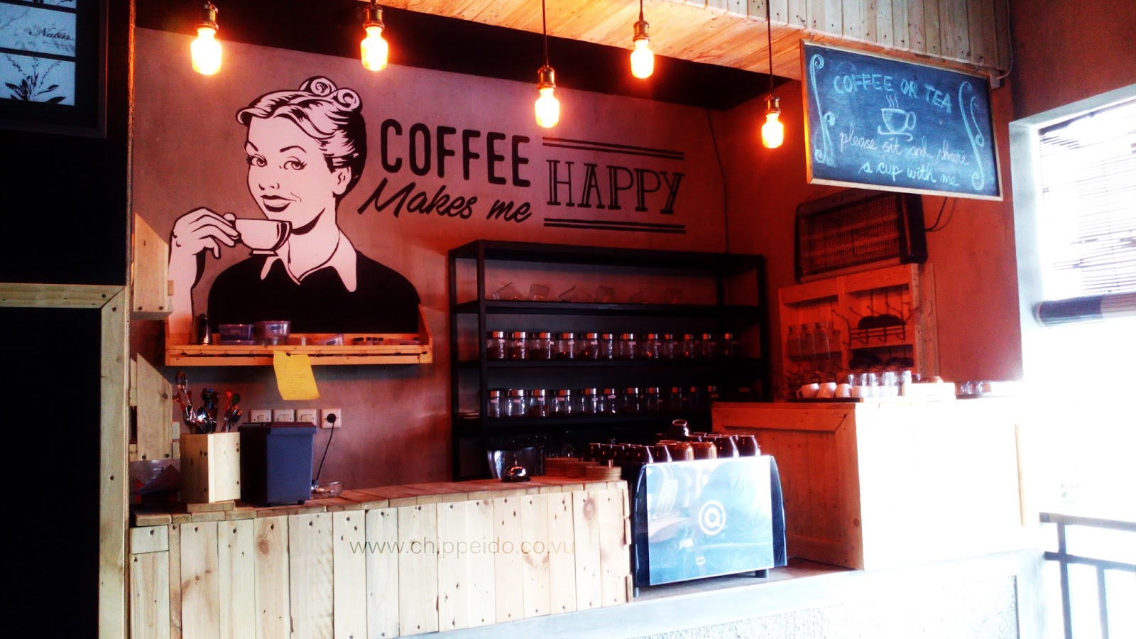 Ini kenampakan lantai 2 ya, peeps. Ada seperti counter coffee yang lengkap dengan beberapa cangkir kopi lucu dan imut. Juga ada lukisan di dinding yang semakin membuatnya nampak vintage bangett.