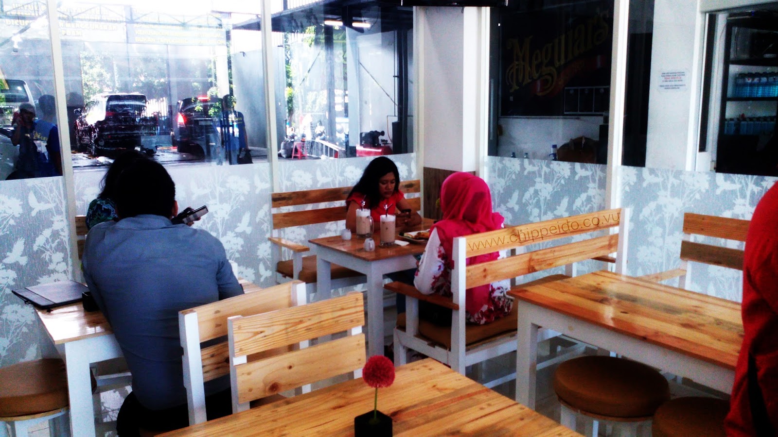 Kalau yang ini di lantai 1nya ya. Aku sendiri prefer di lantai 2. Memang agak bising sih karena kan Dilon ini bersebelahan dengan Dilon Car Wash-nya. Di lantai 1 kita juga bisa lihat mobil-mobil dijejer dan siap antri untuk dimandiin hehe. Kalau di lantai 2, kita bisa lihat ke lokasi car wash di bawah juga namun tanpa kaca jadi sangat bising suaranya.